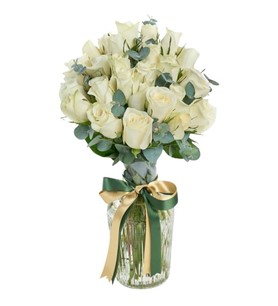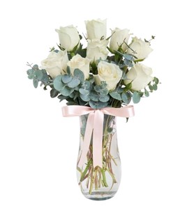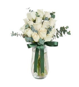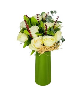 Yeşil Çizgili Vazoda 11 Beyaz Gül