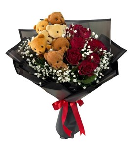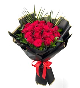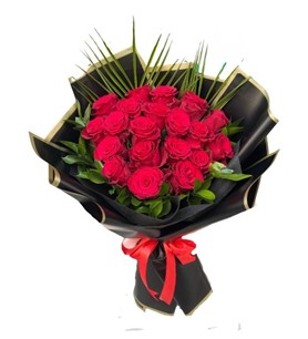 Siyah Buketlikte 20 li Kırmızı Gül Buketi