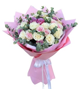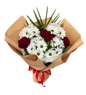 Kraft Kağıtta Beyaz Papatya ve Güller