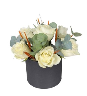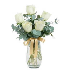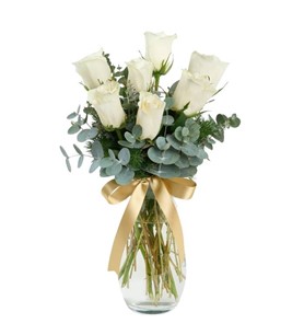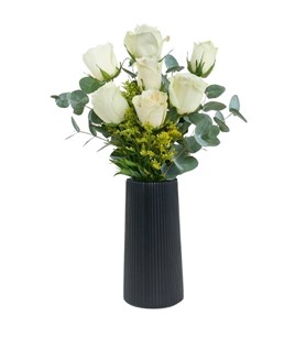 Siyah Çizgili Vazoda 7 Beyaz Gül