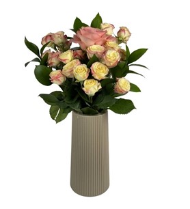 Bej Çizgili Vazoda Pembe Çardak Güller