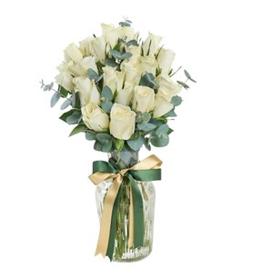 Çizgili Cam Sürahide 21 Beyaz Gül