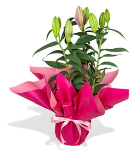 Pembe Buketlikte Polimer Saksıda Pembe Lilyum