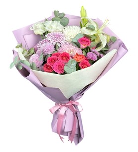 Mürdüm Buketlikte Pembe ve Beyaz Papatyalar