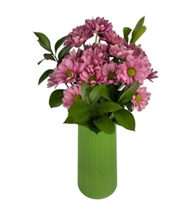 Yeşil Çizgili Vazoda Pempe Papatyalar