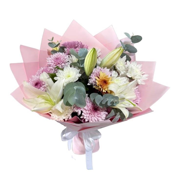 Beyaz Lilyum ve Kasımpatı Buketi